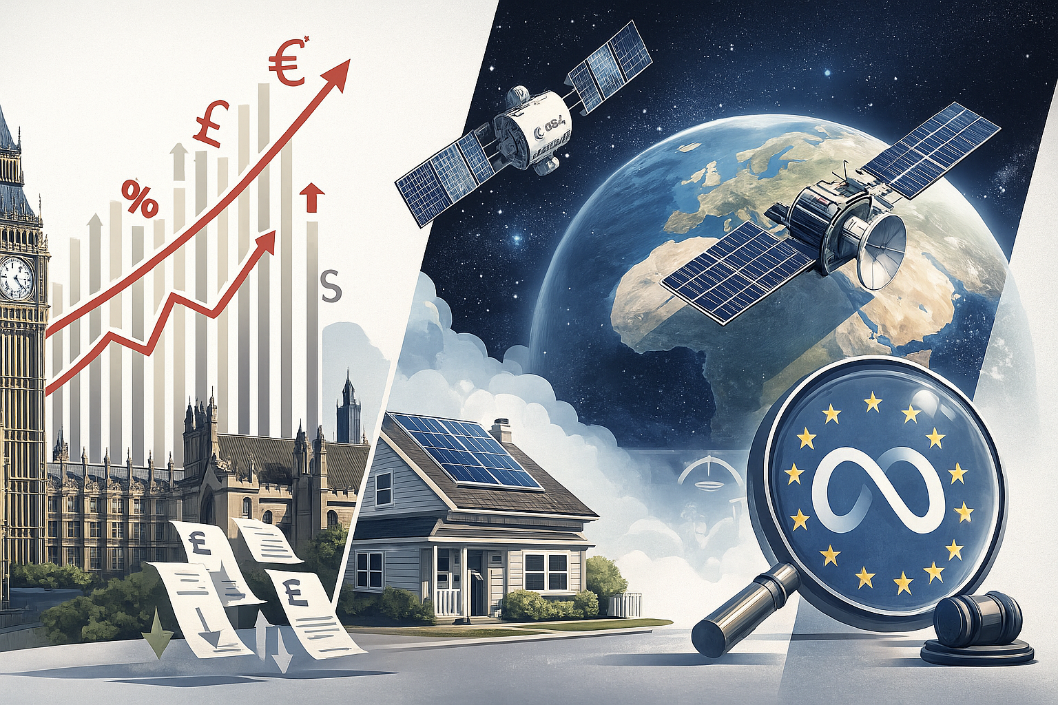 UK politics and European policy are shifting fast, with big moves reshaping economic strategy, energy affordability, defense ambitions, and tech regulation.